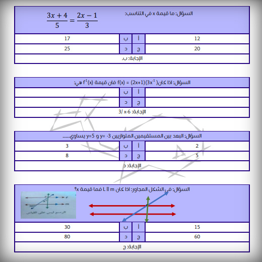 كما نعرض لكم هنا بعض النماذج لاختبار التحصيلي لطلبة الفرع العلمي:
