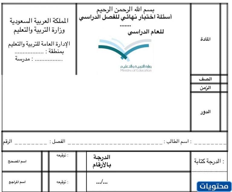 يُمكنكم تَحميل نموذج كليشة اختبار لجميع المراحل الدراسيّة في الملمكة العربية العربية السّعوديّة مع شعار وزارة التعليم السعوديّة الجديد، من خلال الملف المرفق لكم هنا بصيغة الوورد word “من هنا “، وكلّ ما عليكم هو تنزيله على أجهزتكم، وإجراء التّعديل اللازم عليها، ومن ثمَّ طباعتها.