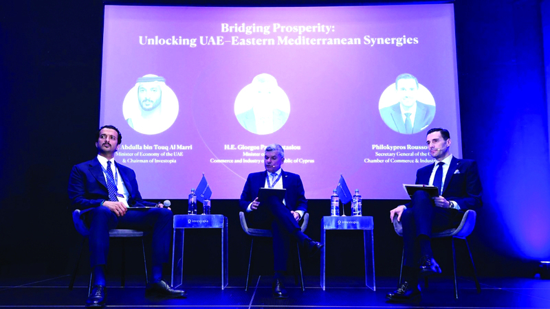 وأضاف بن طوق خلال مشاركته، أمس، في إحدى جلسات الفعالية بعنوان «فتح آفاق التعاون بين دول مجلس التعاون الخليجي وشرق المتوسط»: «نشهد اليوم انطلاق أولى محطات حوارات (إنفستوبيا العالمية) في قبرص، ونسعى من خلالها إلى بناء جسر جديد من التعاون الاقتصادي والاستثماري المثمر بين دولة الإمارات ودول منطقة البحر المتوسط، خصوصاً أن الدولة تنظر إلى هذه المنطقة باعتبارها شريكاً اقتصادياً استراتيجياً، كما نؤمن بأهمية التكامل بين اقتصادات مجلس التعاون الخليجي ودول هذه المنطقة، حيث يمثل فرصة حيوية لتوفير ممر اقتصادي مرن ومتنوع قائم على الابتكار، يُسهم في تعزيز مسيرة التنمية الاقتصادية الشاملة إقليمياً وعالمياً».