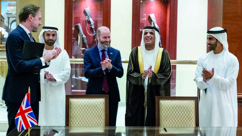 بحضور صاحب السموّ الشيخ سعود بن صقر القاسمي، عضو المجلس الأعلى حاكم رأس الخيمة، وسموّ الشيخ محمد بن سعود بن صقر القاسمي، ولي عهد رأس الخيمة، ووزير دولة للأعمال والتجارة رئيس مجلس التجارة في المملكة المتحدة، جوناثان رينولدز، وقّعت إمارة رأس الخيمة اتفاقية تعاون مشترك مع حكومة المملكة المتحدة، لاستكشاف فرص التعاون التجاري والصناعي، وتوسيع نطاق الشراكة القائمة، وتعزيز الروابط القوية في عدد من المجالات، مثل: التعليم، والثقافة، والتراث.