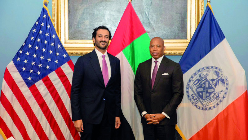 عقد وزير الاقتصاد، عبدالله بن طوق المري، اجتماعاً ثنائياً مع عمدة نيويورك، إيريك آدمز، لبحث تعزيز آفاق التعاون الاقتصادي في القطاعات ذات الاهتمام المتبادل، لاسيما الاقتصاد الجديد، والتكنولوجيا المالية، والطاقة النظيفة، والاقتصاد الأخضر، وريادة الأعمال، والسياحة والنقل، والاقتصاد الدائري، ومناقشة دعم قنوات التواصل بين مجتمعي الأعمال الإماراتي والأميركي.