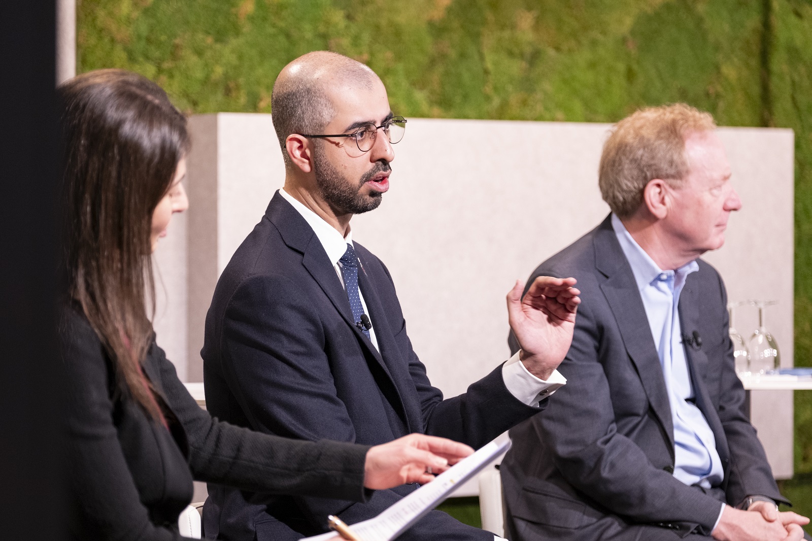 تحدث في الجلسة، عمر سلطان العلماء وبراد سميث رئيس شركة “مايكروسوفت”، وإيان بريمر المؤسس والرئيس لمجموعة أوراسيا، وإيفا مايديل عضو البرلمان الأوروبي ورئيسة لجنة الاتحاد الأوروبي الخاصة المعنية بالذكاء الاصطناعي، وأمانديب سينغ جيل المبعوث الفني للأمم المتحدة، وأدارتها بيانا جولودريجا الإعلامية المتخصصة بالشؤون العالمية في شبكة “سي إن إن”.