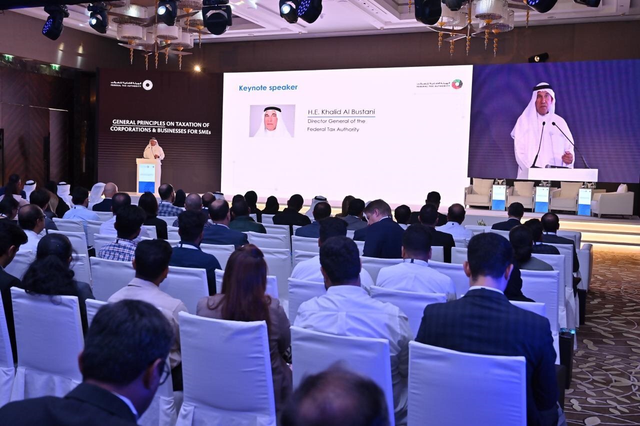 وافتتح خالد علي البستاني مدير عام الهيئة الاتحادية للضرائب ورشة العمل الأولى التي عُقدت في أبوظبي ضمن المرحلة الثانية من حملة التوعية بضريبة الشركات، وخُصِّصت لقطاع الشركات الصغيرة والمتوسطة، وتناولت “التزامات وتسهيلات الأعمال الصغيرة بموجب قانون ضريبة الشركات”، وحضرها عدد من المسؤولين في دائرة المالية في أبوظبي، ودائرة التنمية الاقتصادية – أبوظبي، وصندوق خليفة لتطوير المشاريع، وجمعية الإمارات لريادة الأعمال وغرفة تجارة وصناعة أبوظبي، وعدد من ممثلي الجهات المعنية بالإمارة، وشهدت ورشة العمل إقبالاً كبيراً وتفاعلاً ملحوظاً من المُشاركين الذين بلغ عددهم أكثر من 265 من ممثلي الشركات الصغيرة والمتوسطة.