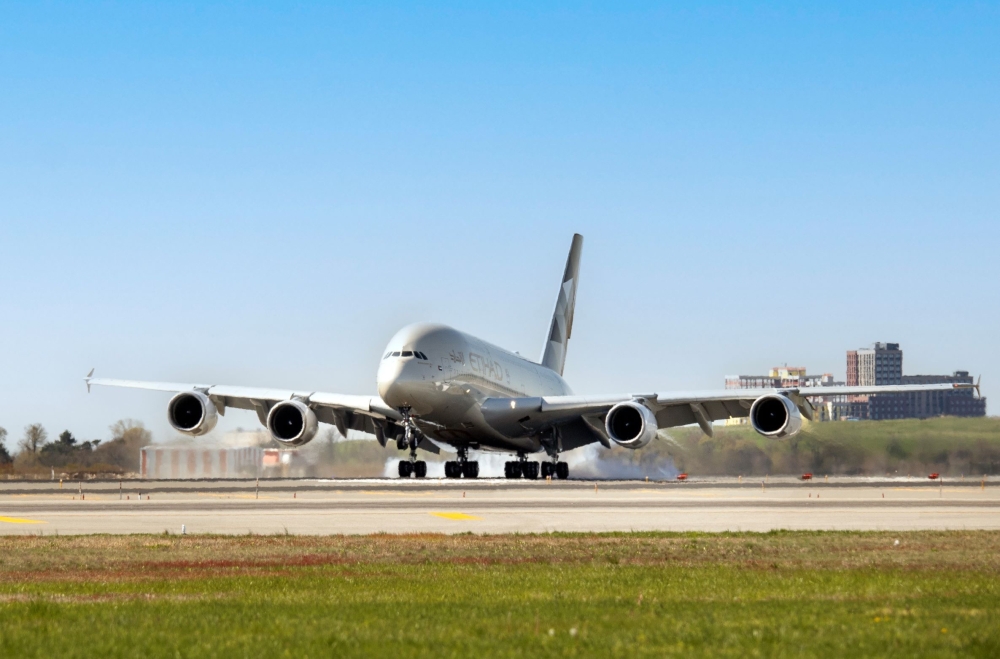 حطّت رحلة «الاتحاد للطيران» رقم «EY1»، المنطلقة من أبوظبي، في مطار «جون إف كينيدي» في نيويورك، أمس الإثنين، لتطلق خدمات الطائرة العملاقة من طراز «إيرباص A380» التي تضم مقصورة «إيوان» المكونة من جناح بثلاث غرف.