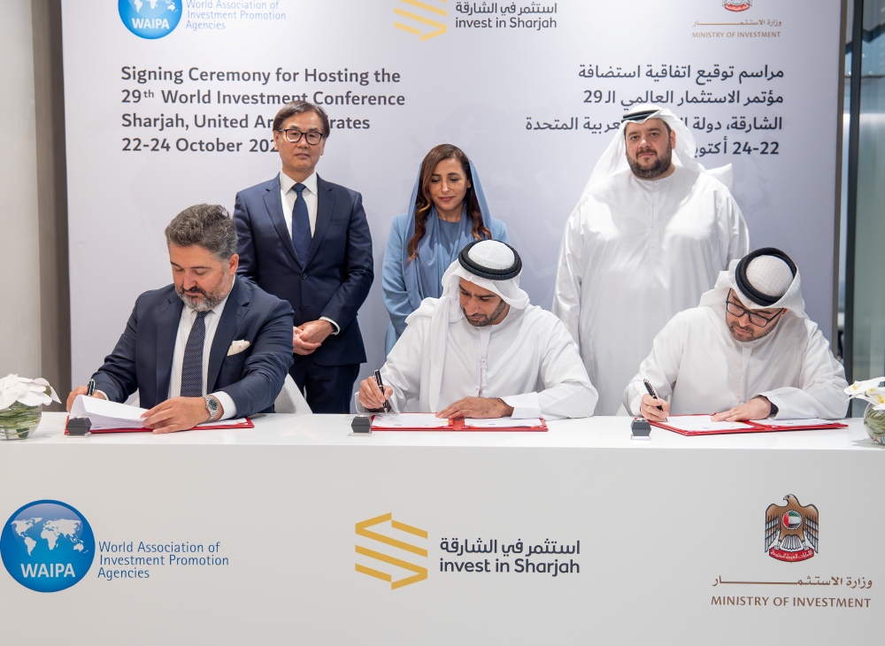 وجاء الإعلان عقب توقيع اتفاقية الاستضافة والتي ضمت الأطراف الثلاث، بحضور الشيخة بدور بنت سلطان القاسمي، رئيسة هيئة الشارقة للاستثمار والتطوير (شروق)، ومحمد حسن السويدي، وزير الاستثمار في دولة الإمارات العربية المتحدة، والدكتور جيمس زان، رئيس المجلس التنفيذي لمؤتمر الاستثمار العالمي ، إلى جانب محمد عبدالرحمن الهاوي ، وكيل وزارة الاستثمار في دولة الإمارات العربية المتحدة، ومحمد جمعة المشرخ، المدير التنفيذي لمكتب الشارقة للاستثمار الأجنبي المباشر “استثمر في الشارقة”، وإسماعيل إرشاهين، المدير والرئيس التنفيذي للرابطة العالمية لوكالات ترويج الاستثمار (وايبا).