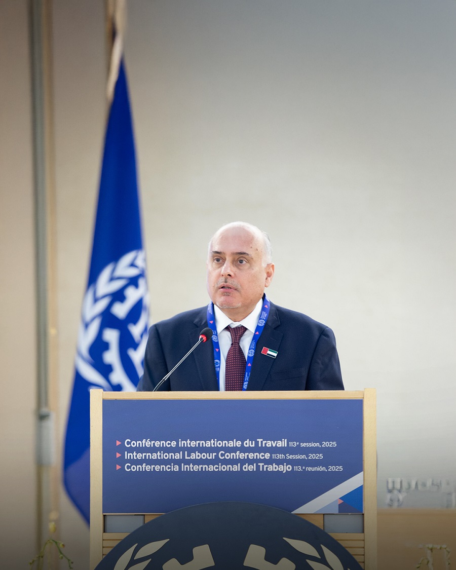وقال العور: “إن تقرير المدير العام لمنظمة العمل الدولية الذي يناقشه المؤتمر ، يعكس في مضمونه رؤية شاملة تتماشى مع توجهات دولة الإمارات في تطوير سوق عمل متوازن ومرن يضع الإنسان في صميم أولوياته”، مضيفاً بأنه انطلاقا من الرؤية الاستشرافية للقيادة الرشيدة، نجحت دولة الإمارات في تحويل التحديات العالمية إلى فرص تنموية، ترتكز على الكفاءة الاقتصادية، والعدالة، وترسيخ التزامها بمعايير العمل اللائق”.