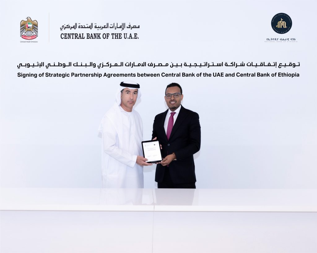 ويعمل مصرف الإمارات المركزي والبنك الوطني الإثيوبي بموجب مذكرة التفاهم الأولى على ترسيخ جهود تعزيز استخدام العملات المحلية “الدرهم الإماراتي والبير الإثيوبي”، في تسوية المعاملات بين البلدين.