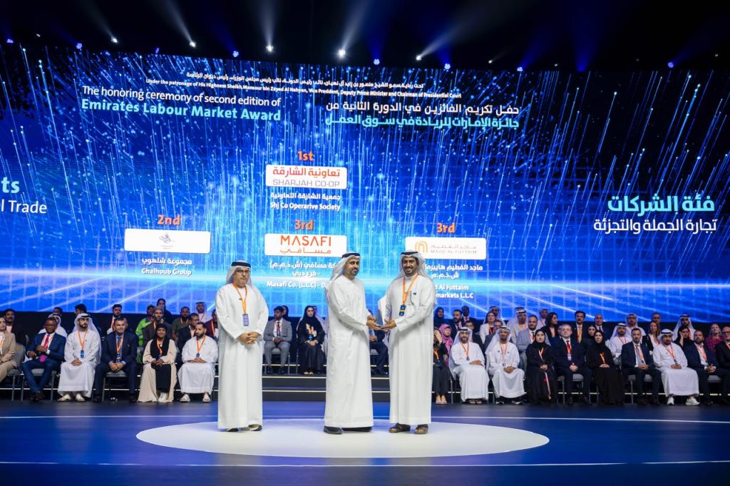 تحت رعاية سمو الشيخ منصور بن زايد آل نهيان، نائب رئيس الدولة، نائب رئيس مجلس الوزراء، رئيس ديوان الرئاسة، كرّم سمو الشيخ ذياب بن محمد بن زايد آل نهيان، نائب رئيس ديوان الرئاسة للشؤون التنموية وأسر الشهداء، رئيس مجلس الشؤون الإنسانية الدولية، والدكتور عبد الرحمن العور، وزير الموارد البشرية والتوطين، تعاونية الشارقة بجائزة الإمارات للريادة في سوق العمل، في دورتها الثالثة حيث تسلم الجائزة عن الرئيس التنفيذي ماجد الجنيد ، السيد هلال المحرم مدير ادارة الموارد البشرية في تعاونية الشارقة.