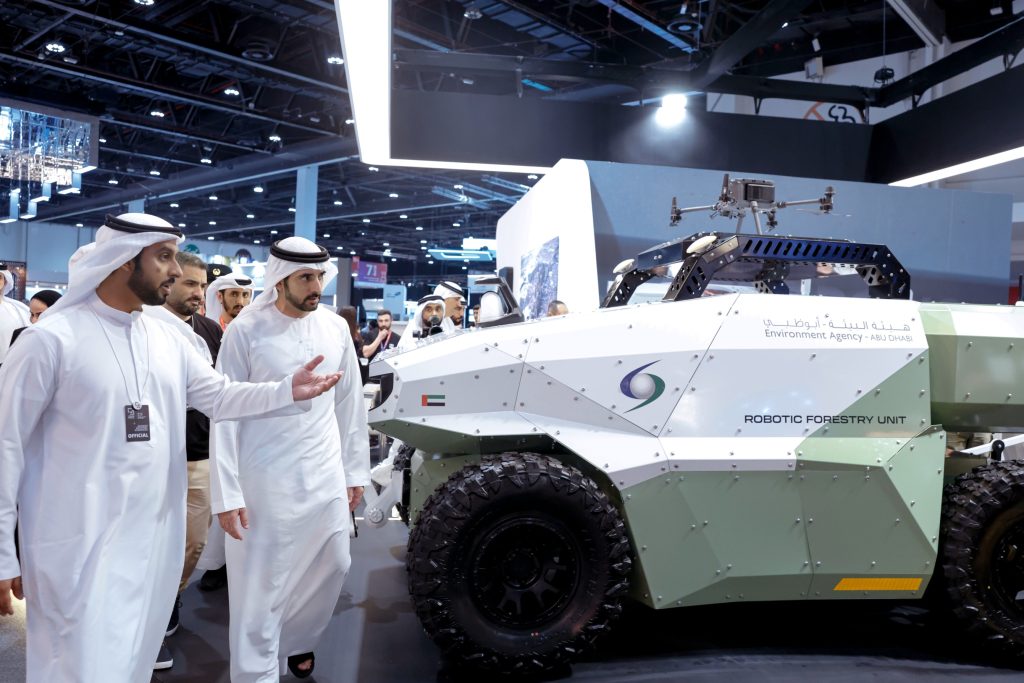 وتوقف سموه خلال الجولة عند جناح “مايكروبوليس روبوتيكس”، حيث شاهد سموه عروضاً حية لمركبة أمنية ذاتية القيادة، وطائرة مسيّرة للرقابة الأمنية، إلى جانب روبوت ذكي يُسهم في رفع الكفاءة التشغيلية في الموانئ، وذلك لتسريع الإجراءات ورفع الكفاءة التشغيلية في الموانئ.