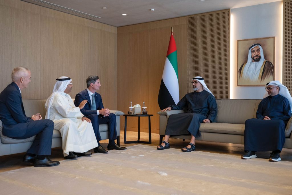 كما بحث اللقاء، الجهود التي تبذلها إمارة أبوظبي لدعم توظيف الحلول التكنولوجية المبتكرة والتقنيات المتقدمة والممارسات المستدامة في قطاع الأعمال، بما يسهم في تحقيق أهداف التنمية الاقتصادية الشاملة والمستدامة، ويدعم مساعي التنوُّع الاقتصادي من خلال الاستثمار في مختلف القطاعات الحيوية.