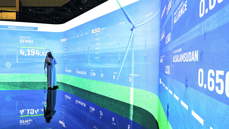 وفي نهاية تعاملات أمس، صعد المؤشر العام لسوق دبي المالي بنسبة 0.8%، أو ما يوازي 42.76 نقطة، ليرتفع إلى مستوى 5361.96 نقطة، مسجلاً بذلك أعلى مستوياته منذ أغسطس 2008، مدعوماً بشكل رئيس بمكاسب أسهم البنوك والعقار، مع تسجيل سيولة بلغت 680.29 مليون درهم. فيما تراجع مؤشر سوق أبوظبي العام (فادجي) في نهاية تعاملات أمس بنسبة 0.34%، ليتراجع إلى مستوى 9625.68 نقطة، مع تسجيل سيولة بلغت 978.35 مليون درهم.