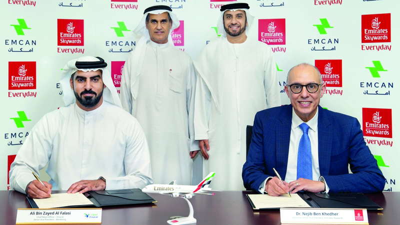 ووقّع الاتفاقية نائب رئيس أول «سكاي واردز طيران الإمارات»، الدكتور نجيب بن خضر، والرئيس التنفيذي لقطاع التجزئة نائب رئيس أول التسويق في «إمارات»، علي بن زايد الفلاسي، بحضور نائب الرئيس والرئيس التنفيذي للعمليات التجارية في «طيران الإمارات»، عدنان كاظم، والرئيس التنفيذي لـ«إمارات»، علي الشامسي.