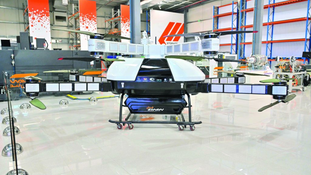 وأوضح المرزوقي أن «(الشركة) أنتجت ضمن خطوط إنتاجها طائرة بدون طيار تحت اسم (غيث)، متخصصة في دعم الأعمال الزراعية، إذ تتولى مهام إلقاء الحبوب، ومراقبة متغيرات المحاصيل الزراعية، وتلقيح النخل، واستخدام الكاميرات في مراقبة ومتابعة الأشجار المزروعة، والتدخل السريع في أي عمليات تتطلب إلقاء حبوب أو غيرها من المتطلبات الزراعية». ولفت المرزوقي إلى أن «(الشركة) تطور حالياً، بالشراكة مع شركة أميركية، طائرة ذاتية القيادة لأغراض نقل الركاب وشحن البضائع، وتعمل بتقنيات مبتكرة تشمل نظام شحن (التربو)، وبلا شفرات للمراوح، حيث تعمل بنظام دفع الهواء»، لافتاً إلى أن «تلك الطائرة قيد التطوير والتجربة حالياً، وتأتي بمساحة يصل طولها إلى تسعة أمتار، وبسرعات تصل إلى 100 كيلومتر في الساعة».