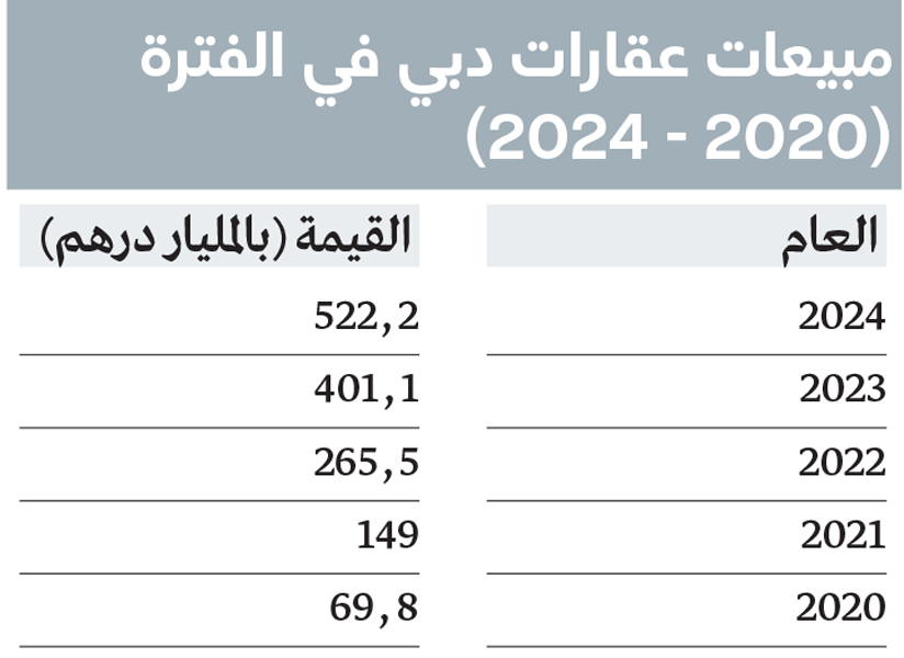 عقارات دبي تختتم 2024 بمبيعات قياسية بقيمة 522.2 مليار درهم