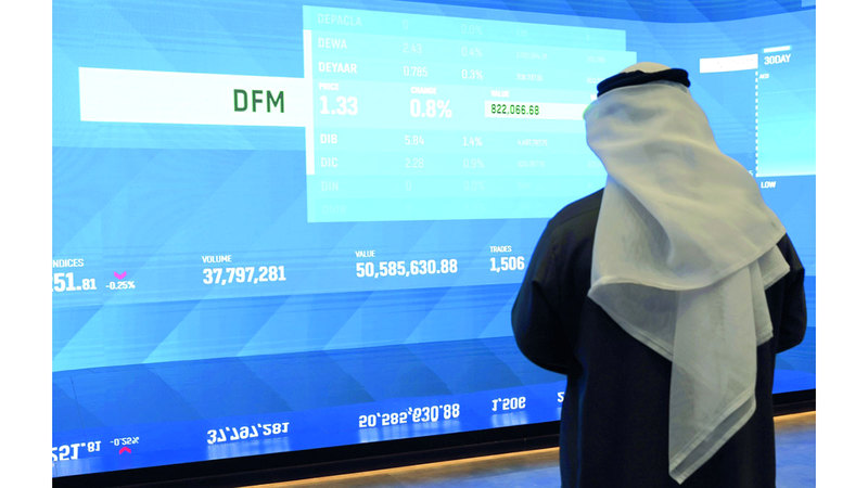 وصعد مؤشر سوق دبي المالي بنسبة 0.7% عند مستوى 4854.45 نقطة، فيما تراجع مؤشر سوق أبوظبي العام (فادجي) بنسبة 0.11% عند مستوى 9266.31 نقطة.