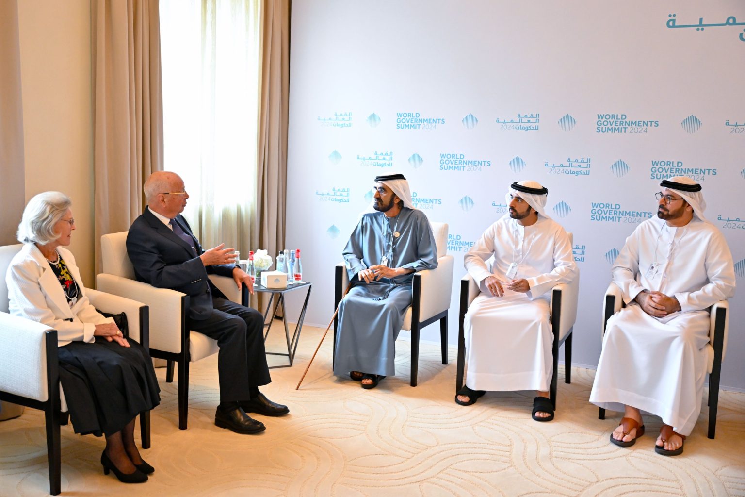 كما حضر اللقاء، سمو الشيخ أحمد بن محمد بن راشد آل مكتوم النائب الثاني لحاكم دبي، وسمو الشيخ أحمد بن سعيد آل مكتوم، الرئيس الأعلى الرئيس التنفيذي لطيران الإمارات والمجموعة، وسمو الشيخ منصور بن محمد بن راشد آل مكتوم رئيس مجلس دبي لأمن المنافذ الحدودية، ومعالي محمد عبد الله القرقاوي وزير شؤون مجلس الوزراء، رئيس مؤسسة القمة العالمية للحكومات، ومعالي عمر بن سلطان العلماء، وزير دولة للذكاء الاصطناعي والاقتصاد الرقمي وتطبيقات العمل عن بُعد، نائب رئيس مؤسسة القمة العالمية للحكومات.