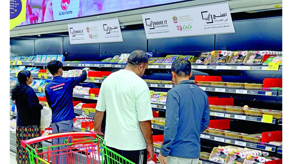 وأضاف أن منافذ بيع وضعت لافتات بارزة كُتب عليها «صُنع في الإمارات»، للتعريف بالسلع المُصنعة محلياً، ما أصبح يشكل علامة على الجودة، ويزيد الإقبال عليها، لاسيما إذا كنت ضمن تخفيضات سعرية.