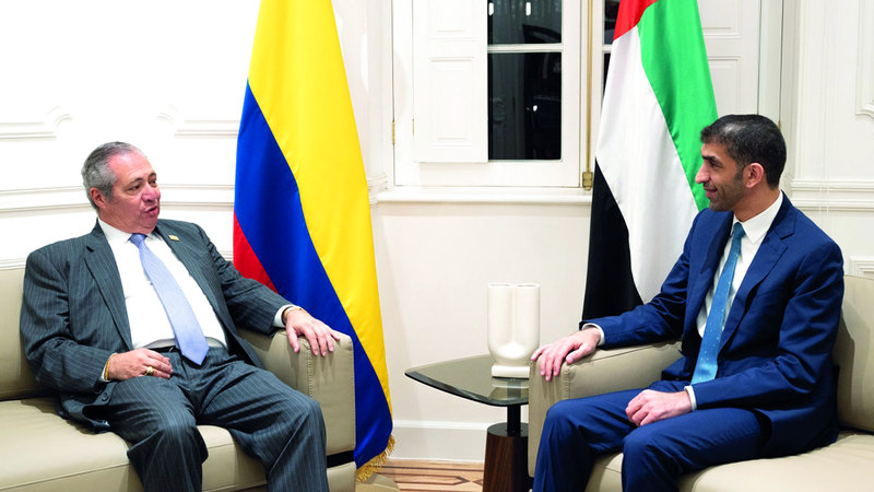 وزير دولة للتجارة الخارجية، الدكتور ثاني بن أحمد الزيودي، على هامش زيارة وفد دولة الإمارات رفيعة المستوى إلى كولومبيا.