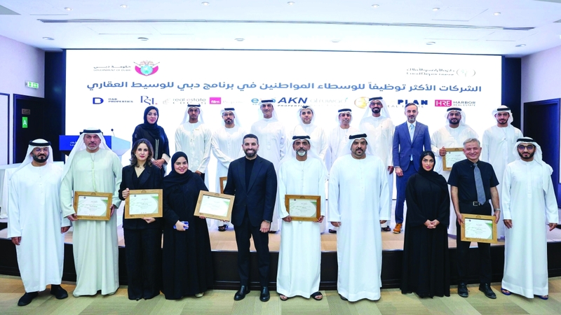 وأقيم الحفل بمقر دائرة الأراضي والأملاك في دبي، بحضور المدير العام للدائرة، عمر حمد بوشهاب. وشهد الحفل تكريم 10 شركات وساطة عقارية، تقديراً لدورها الريادي وإسهاماتها الفاعلة في تجاوز المستهدفات الرئيسة للبرنامج من حيث توظيف المواطنين، الأمر الذي يسهم في منحها نقاطاً إضافية ترتقي بتصنيفها لدى الدائرة، في خطوة تعبّر عن التزام فعلي بدعم مسيرة التوطين في القطاع العقاري، وتعزيز مشاركة الكفاءات الوطنية في مجالاته المختلفة.
