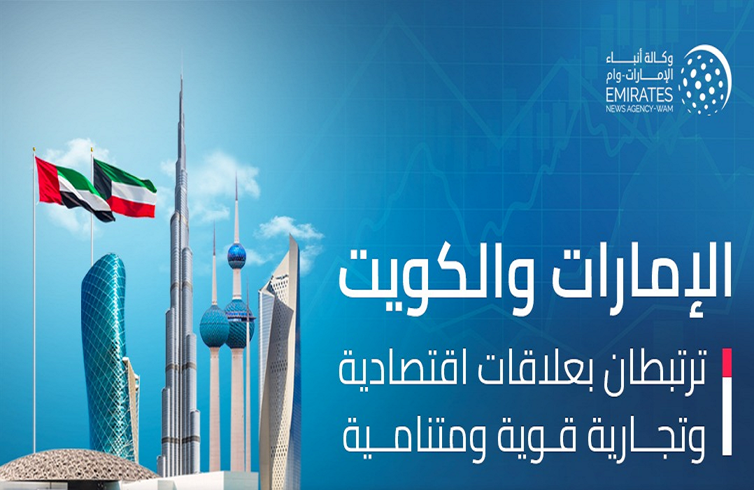 ترتبط دولة الإمارات ودولة الكويت الشقيقة بعلاقات اقتصادية وتجارية قوية ومتنامية، في ظل الحرص المشترك على تعزيزها والمضي بها قدماً إلى مجالات أرحب، وبما يحقق مصالح البلدين والشعبين الشقيقين.
