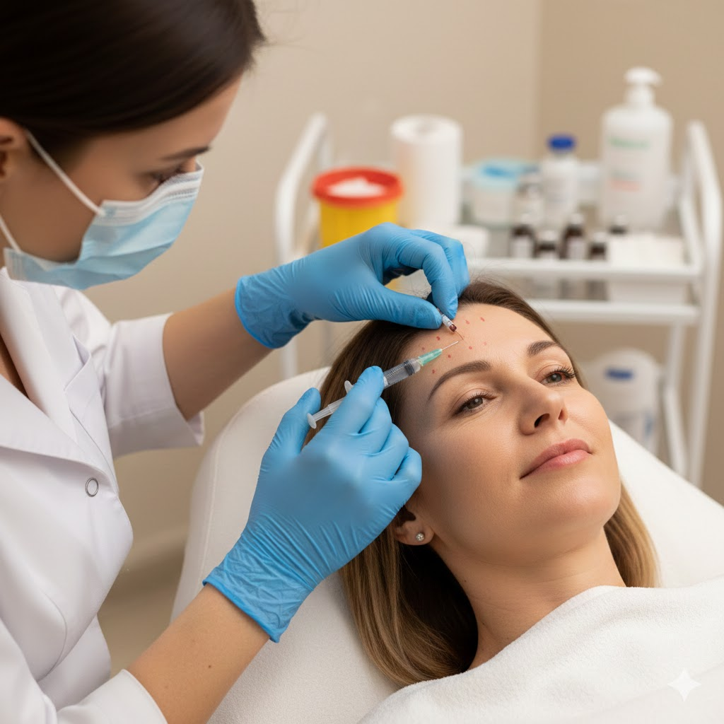 يتم حقن وحدات توكسين البوتولينوم باستخدام إبر دقيقة في المناطق المحددة، ثم يُوضع كريم مهدئ لتهدئة البشرة وتعزيز الراحة بعد الإجراء.