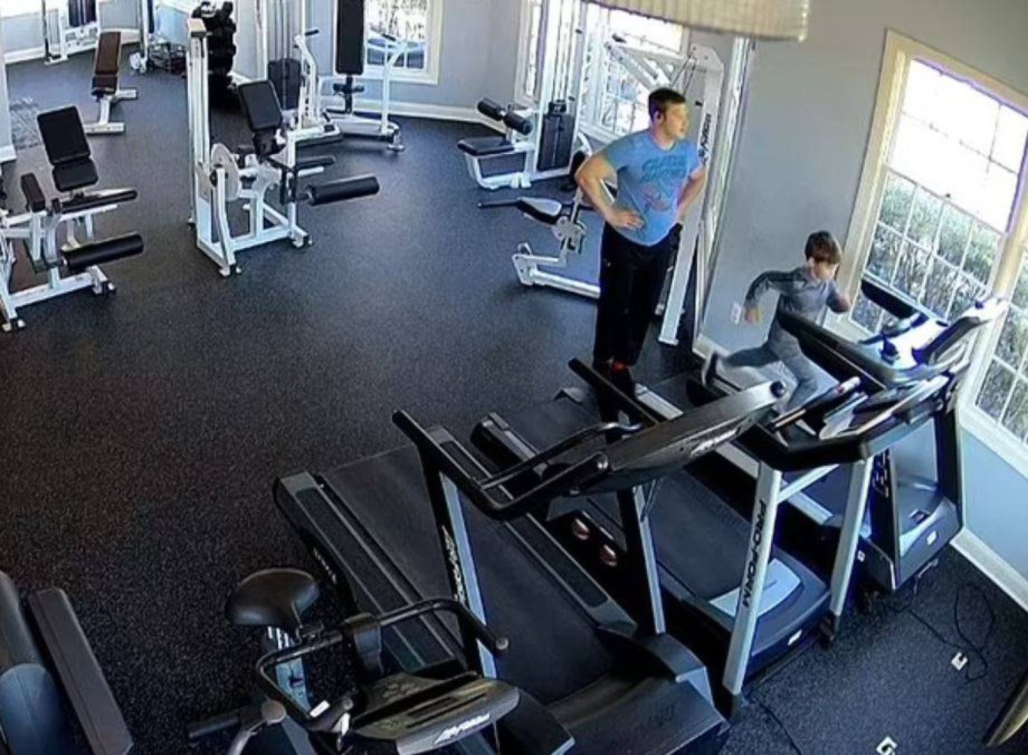 غريغور وهو يمارس تمريناً عنيفاً لابنه في مركز أتلانتيك هايتس كلوب هاوس للياقة البدنية في 20 مارس 2021، بزعم أنه يعتقد أن ابنه سمين جداً.
