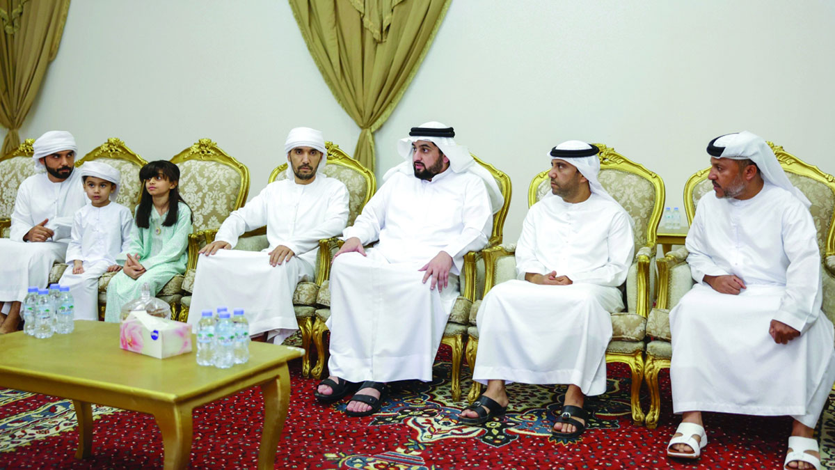 كما قدّم سموّه واجب العزاء في الشهيد الوكيل أول خليفة إبراهيم المندوس البلوشي، وأعرب سموّه، خلال زيارته لمجلس العزاء في عجمان، أمس، عن خالص تعازيه ومواساته إلى ذوي شهيد الواجب، داعياً المولى عزّ وجل أن يتغمده وشهداء الوطن بواسع رحمته ومغفرته، ويلهم أهله وذويه الصبر والسلوان.