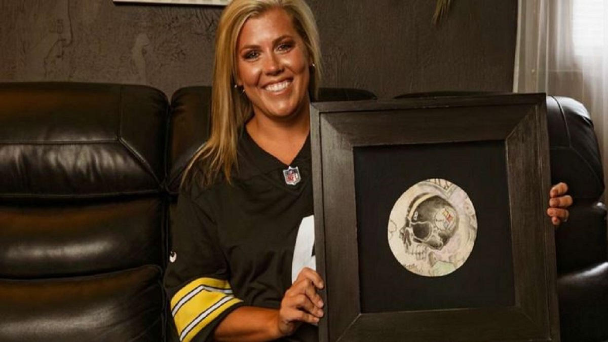 وكان الوشم الذي اختارا الاحتفاظ به هو وشم يجسد خوذة فريق بيتسبرغ ستيلرز بالألوان الكاملة، مزيناً برسومات جمجمة، بلوني الرجل المفضلين الأسود والذهبي.