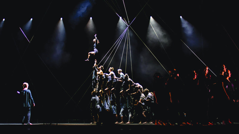 بين قوة عروض الأكروبات والسرد العاطفي الغنائي يقدم عرض «ذا بالس» الذي انطلق على خشبة «دبي أوبرا»، أول من أمس، تجربة حسية تنبض بالحياة، قوامها الإبهار البصري والمؤثرات الصوتية والإضاءة الغامرة، إذ تُبنى الأهرامات البشرية وتنهار، ثم تبنى من جديد وفق إيقاع متناغم وموسيقى تصاعدية.