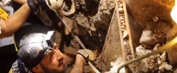 وتظهر في أحد المقاطع المصورة لهفة الأب على طفله العالق بين الحياة والموت، بحالةٍ صعبة تبدلت لأملٍ وفرح بعد إنقاذ طفله على قيد الحياة.
