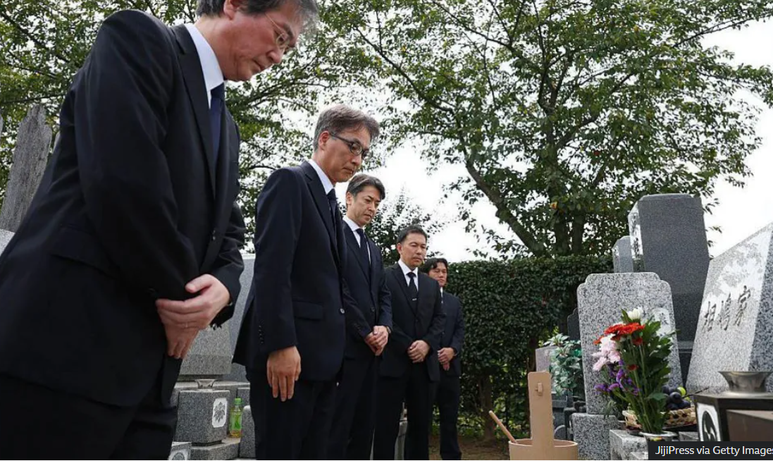 وانتظرت عائلته عند قبره في يوكوهاما يوم الإثنين لقبول الاعتذار والزهور، لكن مع ذلك، قالت زوجته إنها لا تستطيع مسامحة من كانوا وراء التهمة.