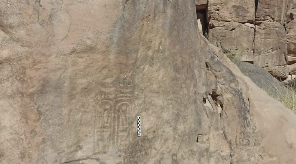وجاء الإعلان خلال فعالية رسمية حضرها عالم الآثار المصري الشهير الدكتور زاهي حواس، حيث تم الكشف عن نقش هيروغليفي فرعوني ملكي يحمل ختمًا ملكيًا (خرطوشًا) يعود إلى عصر الفرعون المصري رمسيس الثالث، الذي حكم مصر بين عامي 1186 و1155 قبل الميلاد.