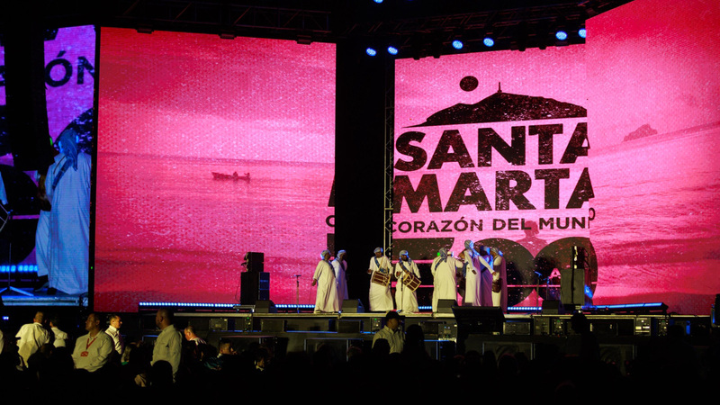 وتُعدّ سانتا مارتا، المدينة الساحلية على البحر الكاريبي، من أقدم التجمعات الحضرية القائمة في أميركا الجنوبية، وصاغت هويتها جذورٌ متعددة تجمع بين الثقافات الأصلية والإفريقية والإسبانية والعربية، واحتفالاً بغنى هذا الإرث الإنساني المشترك وتنوّعه، جمعت الفعالية بين عروض مسرحية وأنماط موسيقية متنوّعة من سييرا نيفادا والكاريبي والمتوسط والشرق الأوسط.