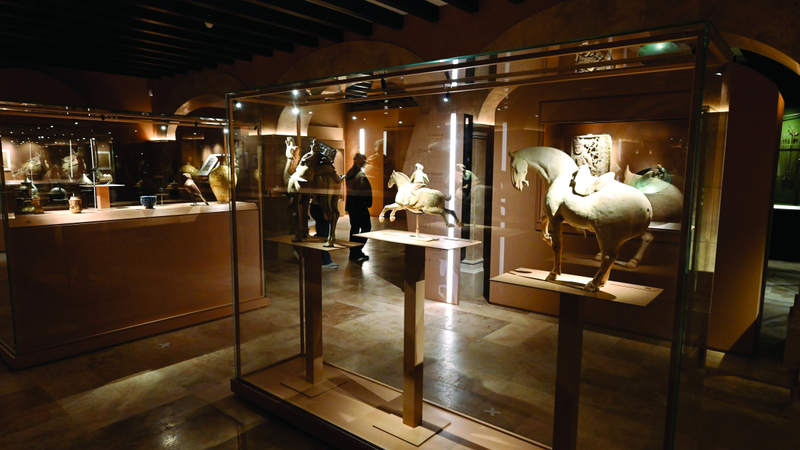وإلى جانب الأقسام المخصصة للخيول والتدريب، تضم المدرسة «معرض الفروسية»، وهو الأكبر في العالم العربي، حيث يضم 173 قطعة من القطع الأثرية النادرة، بعضها يعود تاريخه إلى ما يزيد على 2000 عام، وتتتبع هذه الأعمال مسار رحلة البشرية عبر مختلف الحضارات والثقافات، من السهول العشبية في آسيا الوسطى إلى قصور الأندلس، حيث اعتبرت الخيل رمزاً للقوة والجمال. وتبرز القطع المعروضة من الأسلحة والدروع والمخطوطات ومعدات الفروسية واللوحات، تقاليد الفروسية في المثابرة والحرفية والإتقان، ليس باعتبارها شواهد من الماضي فحسب، بل تعبيرٌ حيٌ عن شراكة كتبت تاريخاً مشتركاً.