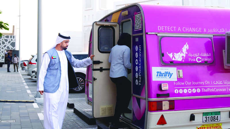 في إطار الجهود الرامية إلى تعزيز التوعية بسرطان الثدي وأهمية الكشف المبكر عنه، قدمت القافلة الوردية الفحص السريري للثدي في عيادتها المتنقلة المصغرة المخصصة حصراً لهذا الفحص، وفتحت الباب أمام الشركات لحجز العيادة المصغرة كجزء من المبادرات التي تجسد التزامها المسؤولية المجتمعية خلال شهر التوعية بسرطان الثدي، أكتوبر المقبل، بما يعزز استدامة خدمات القافلة الوردية وجهودها الرامية إلى تحقيق الهدف الثالث من أهداف التنمية المستدامة؛ الصحة والرفاه.