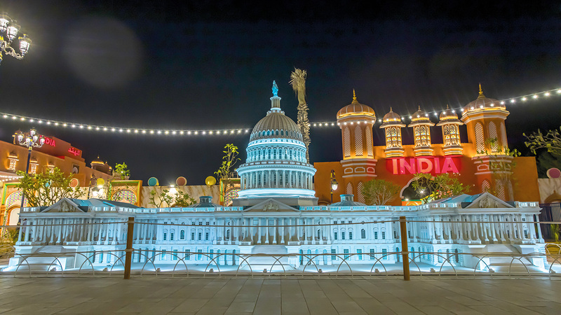 وتقع «ميني وورلد» التي تمتد على مساحة 10 آلاف و300 متر مربع، خلف ممشى المطاعم بجوار منطقة كرنفال، وتحتفي بثقافات العالم من خلال عرضها 25 من المجسمات المصغرة لأشهر المعالم، من بينها برج العرب وقوس النصر وأهرامات الجيزة.