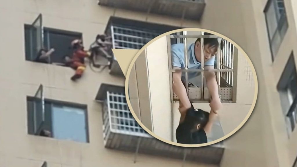 وبدافع غريزي، انحنت وو وأمسكت بيدي الطفلة الممدودتين، ممسكةً بها بقوة وهي تُواسيها وتنادي على ابنها البالغ من العمر 16 عاماً ليتصل بالشرطة وخدمات الإطفاء. وهمست المرأة للفتاة بهدوء: «لا تخافي، الشرطة ورجال الإطفاء سيصلون قريباً». وهرع الجيران زينغ جون وجو بو إلى الطابق الـ14 للمساعدة، وحلّوا محلّ وو، وأمسكوا بالفتاة المذعورة بحرص.