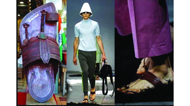 وأظهرت صور من عرض أزياء «برادا» في ميلانو الأسبوع الماضي عارضات يرتدين صنادل جلدية بتصميم متشابك على شكل ضفائر يشبه نعال كولهابوري المصنوعة يدوياً والتي تعود تصميماتها إلى القرن الثاني عشر.