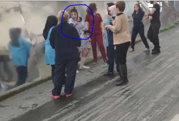 وفي مقطع قصير تم تداوله عبر الإنترنت، يمكن رؤية امرأة ترتدي رداء المرضى ونعالًا بيضاء وهي تتجادل مع الأطباء والممرضات الذين يحاولون منعها من مغادرة المكان.