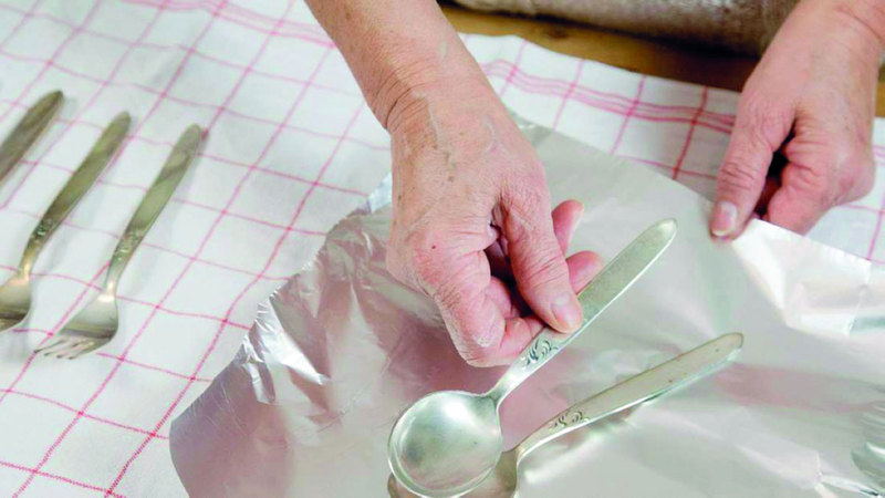 أفاد خبراء مركز استشارات المستهلك بولاية شمال الراين ويستفاليا في ألمانيا، بأنه يمكن استعادة بريق أدوات المائدة الفضية، التي تعرّضت للصدأ، من خلال وضعها في وعاء من الزجاج أو الخزف أو البورسلين ومبطن بالكامل برقائق الألمنيوم، ثم إضافة ملح وماء وترك الوعاء يغلي لبضع دقائق.