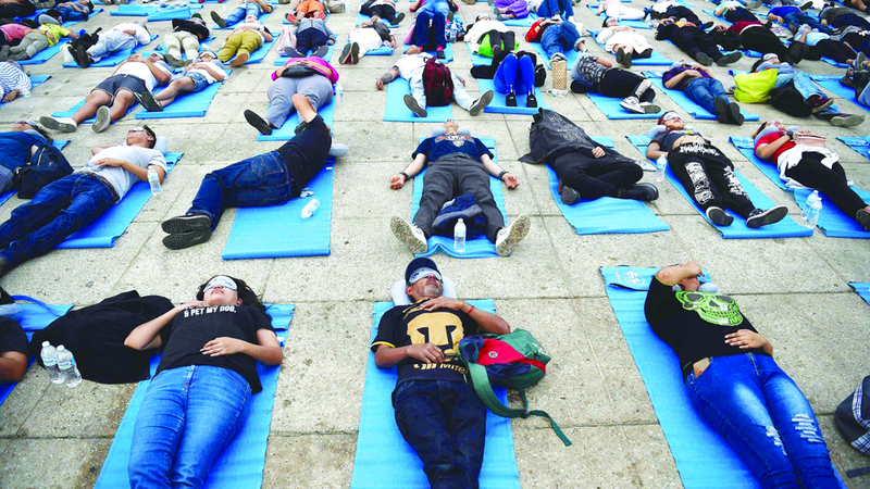 واستلقى المشاركون على حصائر اصطناعية، وأسندوا رؤوسهم إلى وسادات وغطوا عيونهم بأقنعة، قاطعين الطريق لبعض الوقت ومعها الإيقاع المحموم لوسط العاصمة المكسيكية، في «تظاهرة سلمية من أجل الحق في النوم»، بحسب المنظمين.