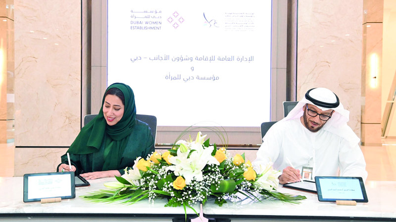 وقّعت الإدارة العامة للإقامة وشؤون الأجانب في دبي مذكّرة تفاهم مع مؤسسة دبي للمرأة، لتعزيز مجالات التعاون، والمشاركة في المنتديات المتخصصة وتبادل أفضل الممارسات.