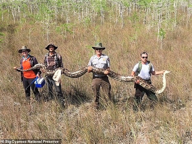ومنذ عام 2013، نجحت هيئة حماية جنوب غرب فلوريدا في إزالة أكثر من 40,000 رطل ( 18  ألف كغ) من هذه الحيوانات المفترسة من مساحة لا تتجاوز 200 ميل مربع ( 517  كم مربع ) من إيفرجليدز. ويعادل هذا الوزن  وزن شاحنة إطفاء، وهو بالكاد قطرة في بحر. إذ يمتد النظام البيئي الأكبر على مساحة  7,800 ميل مربع حوالي(  20   ألف كم مربع) ، ويُعتقد أن عشرات الآلاف من أفاعي البايثون تتسلل عبره.