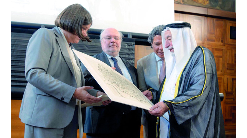 . حاكم الشارقة أهدى كتابه «مرسوم بابوي» باللغتين العربية والإنجليزية للجامعة.