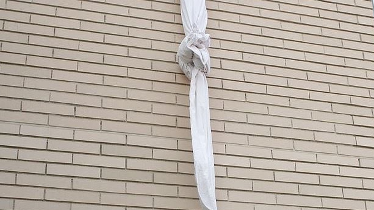 وفي حالة من الذعر، عقد الرجل ملاءتين معاً في محاولة للهرب دون أن يُكتشف أمره، بأسلوب يعيد إلى الأذهان أبطال أفلام الحركة السينمائية.