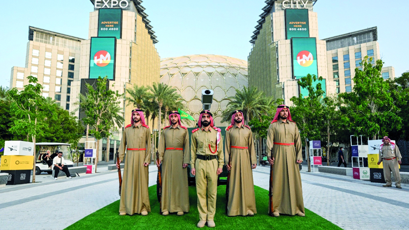 رجال من شرطة دبي على أهبة الاستعداد لإطلاق مدفع الإفطار، حيث صار لهذا التقليد التراثي العريق مكانه الدائم طوال الشهر الفضيل، بين جنبات «مدينة إكسبو دبي» التي استضافت المعرض العالمي، ومازالت وجهة لكثير من الزوار، الذين أعدت لهم المدينة «حيّاً» وبرنامجاً حافلاً بالفعاليات والأمسيات في رمضان.