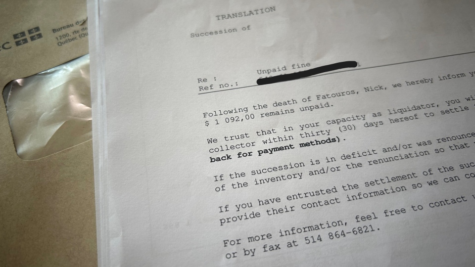 ففي رسالة من 14 صفحة من وزارة العدل الكندية كتبت له الحكومة أنها تأمل في تحصيل الأموال من ملكيته (أو رصيده) مقابل مخالفة سرعة جرت منذ عامين.
