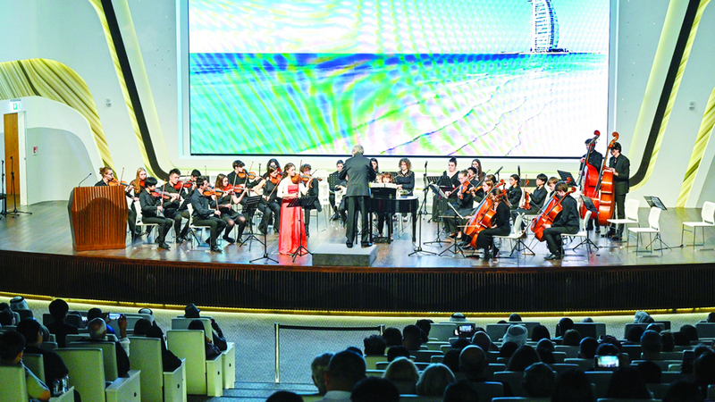 عالم من الأنغام الراقية، صدح أول من أمس، بين جنبات مكتبة محمد بن راشد في دبي، التي استضافت حفل أوركسترا الإمارات السيمفونية للناشئة، بمشاركة مجموعة موسيقيين شباب من كل من أوركسترا الشباب في التشيك واليابان وتايوان وعازفتي الكمان المصريتين العالميتين مريم وأميرة أبوزهرة.