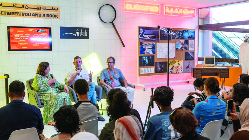 تحت عنوان «المشهد الأول.. الفصل الأول: ترجمة الرواية إلى الشاشة»، اجتمع الكاتب والسيناريست الأميركي مات ويتن، والروائي الآيسلندي رجنار يوناسون، في جلسة حوارية ضمن فعاليات معرض الشارقة الدولي للكتاب، للحديث عن فن تحويل الكلمة المكتوبة إلى صورة متحركة.