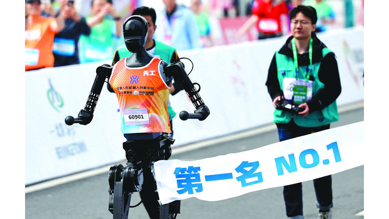 انضم 21 روبوتاً على هيئة بشر إلى آلاف العدائين في نصف ماراثون ييتشوانج في بكين، أمس، لتصبح هذه المرة الأولى التي تتسابق فيها هذه الآلات بجانب البشر في مسار يبلغ طوله 21 كيلومتراً.